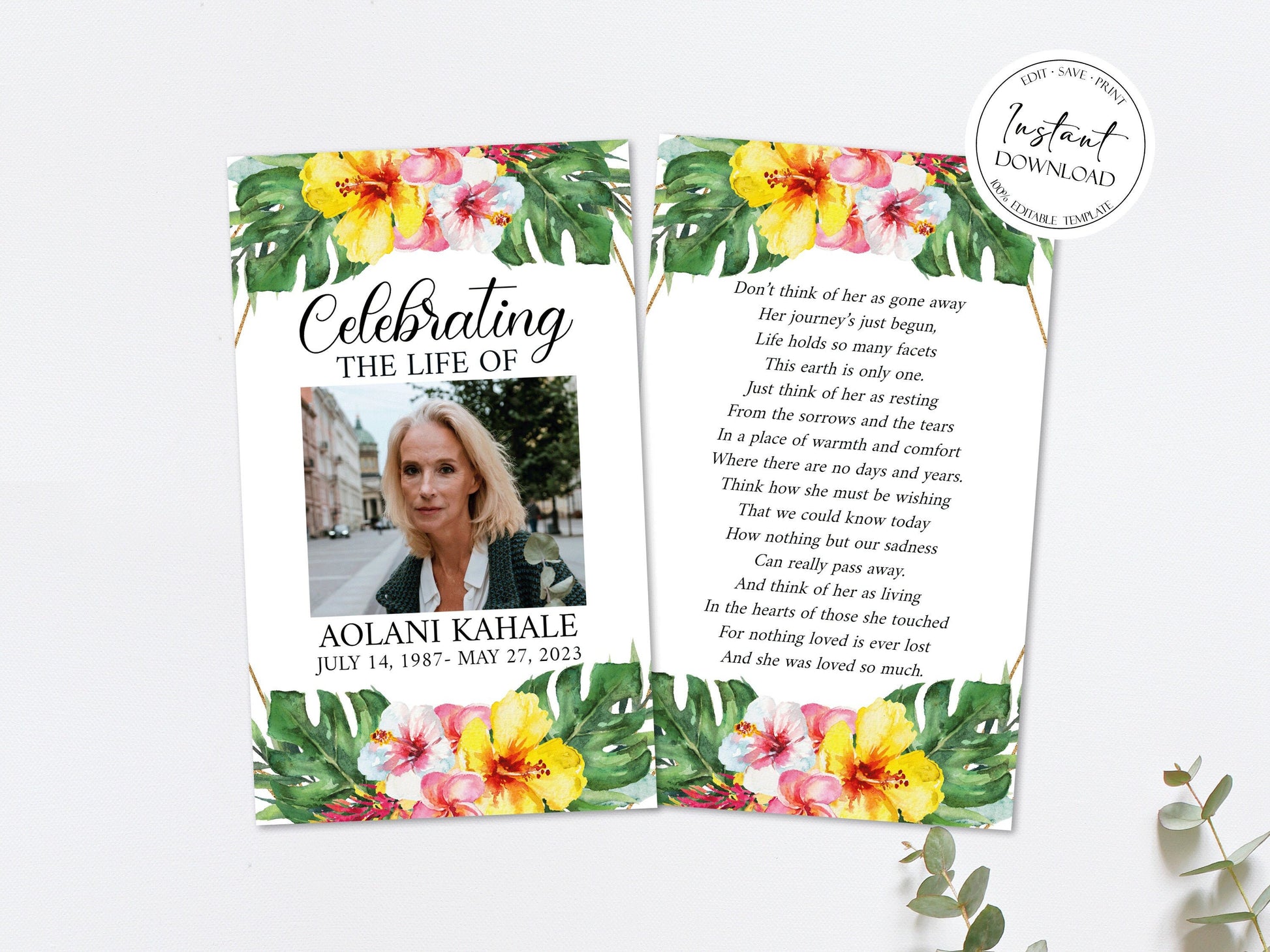 Celebration Of Life Hawaiian Tropical Plumeria Funeral Prayer Card
