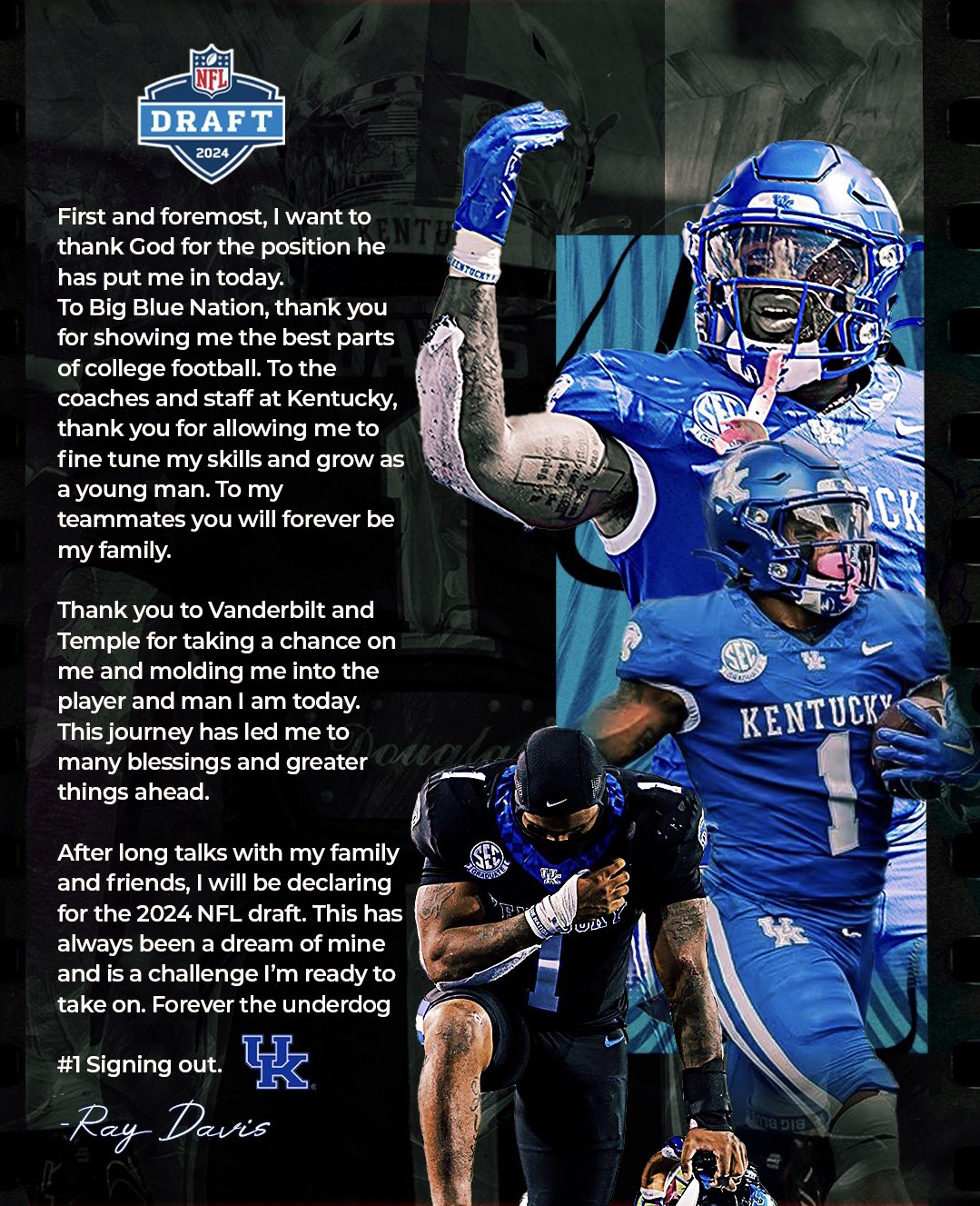 Chris Beasmore on X: “Ray Davis has declared for the NFL Draft, no