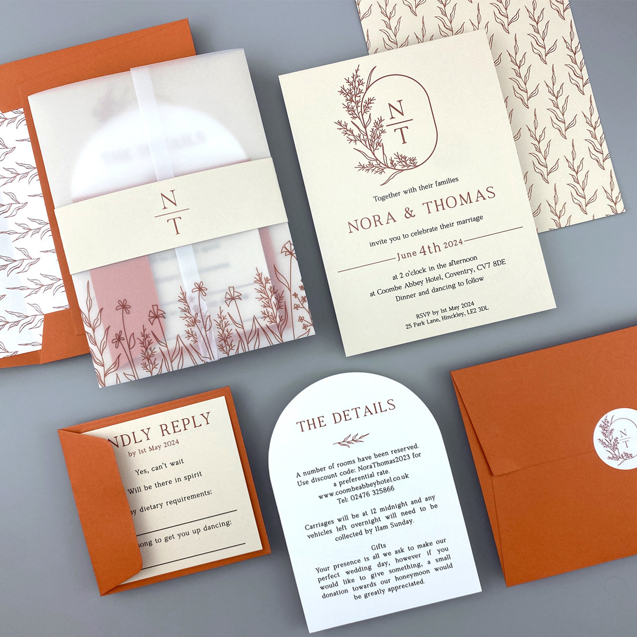 SAMPLE ONLY Nora Wedding Invitation With Floral Printed Vellum Etsy