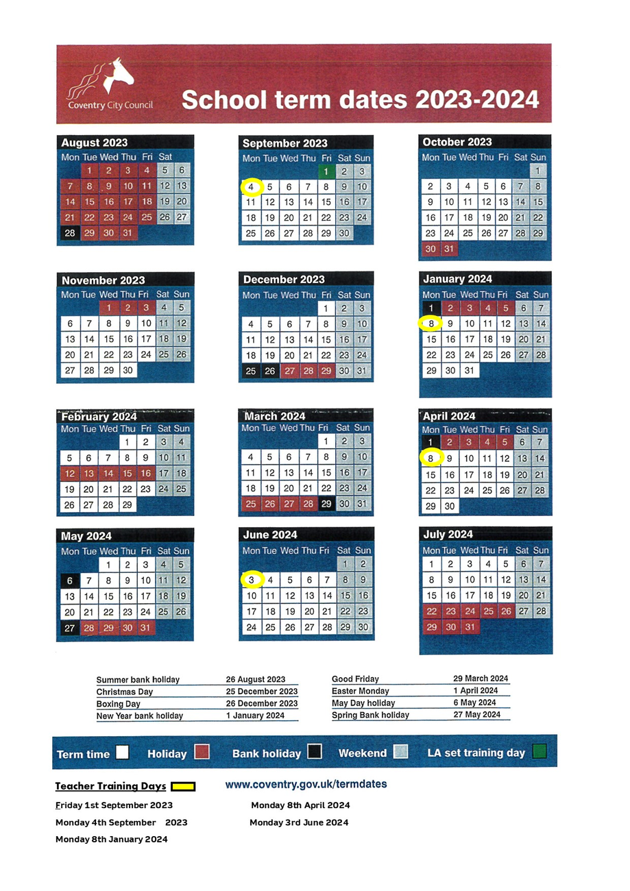 term dates 2024/25 coventry Calendar and term dates โ Southfields Primary School: . .